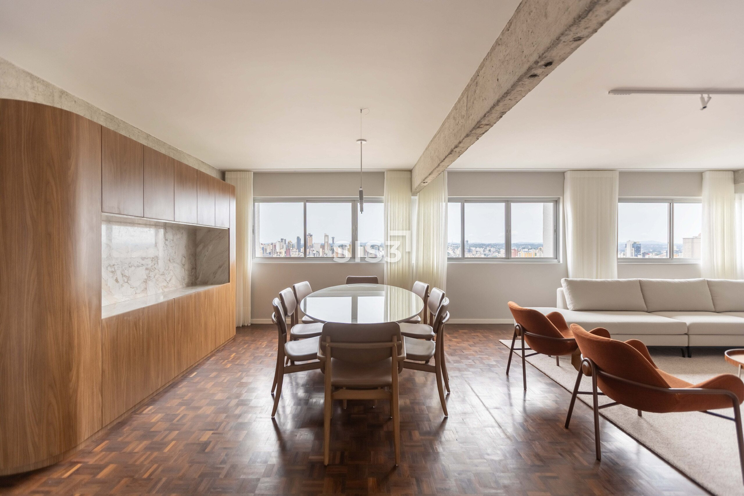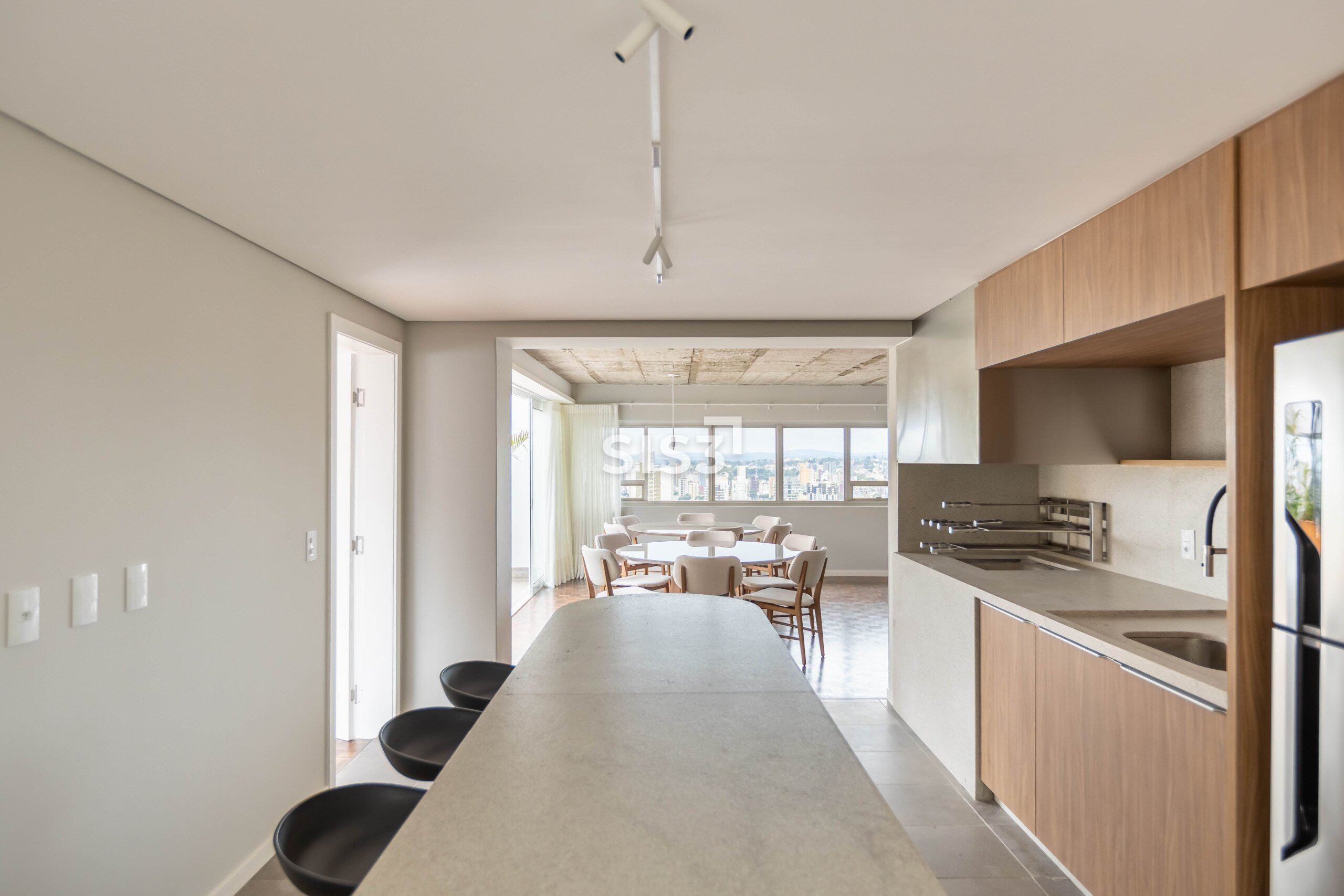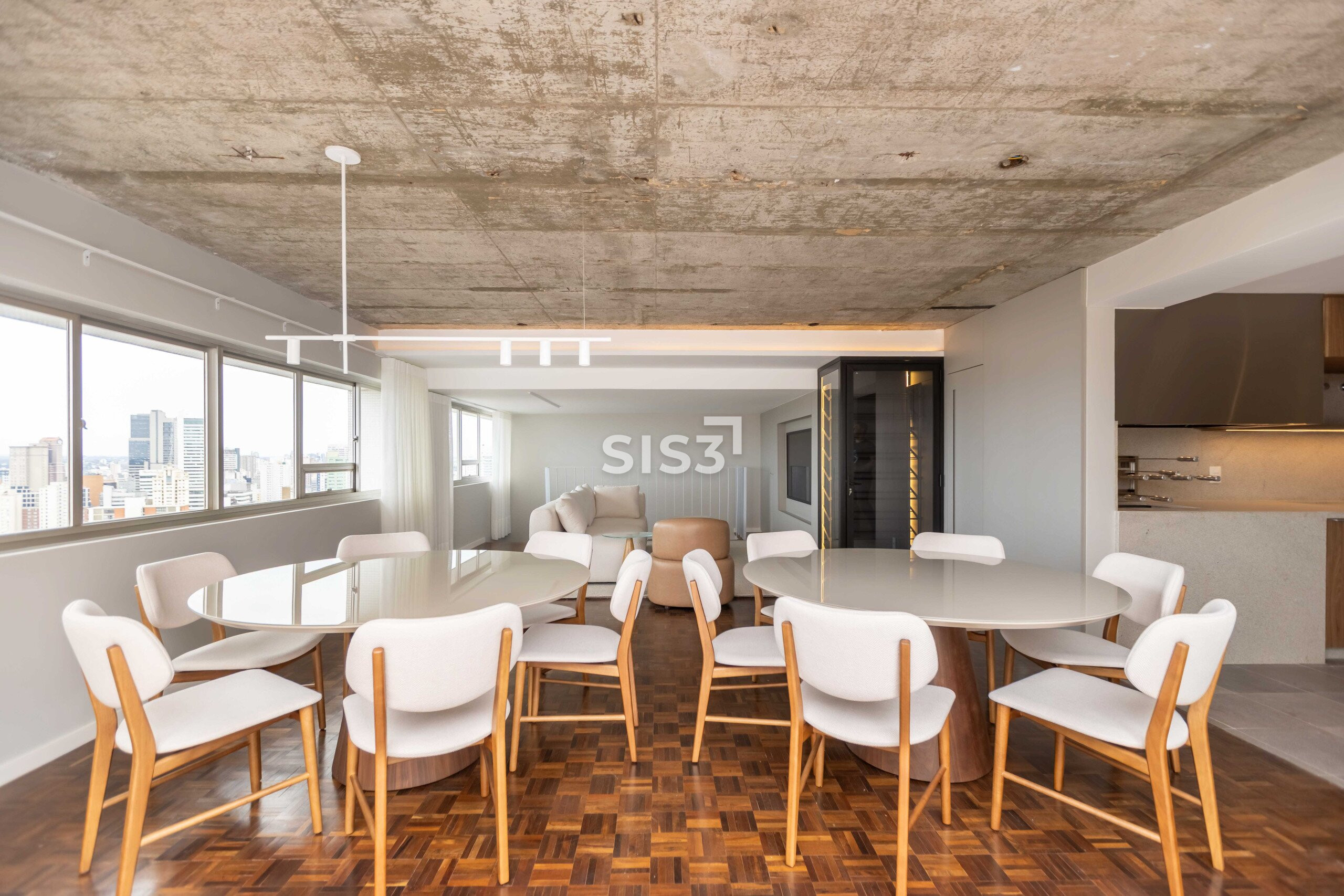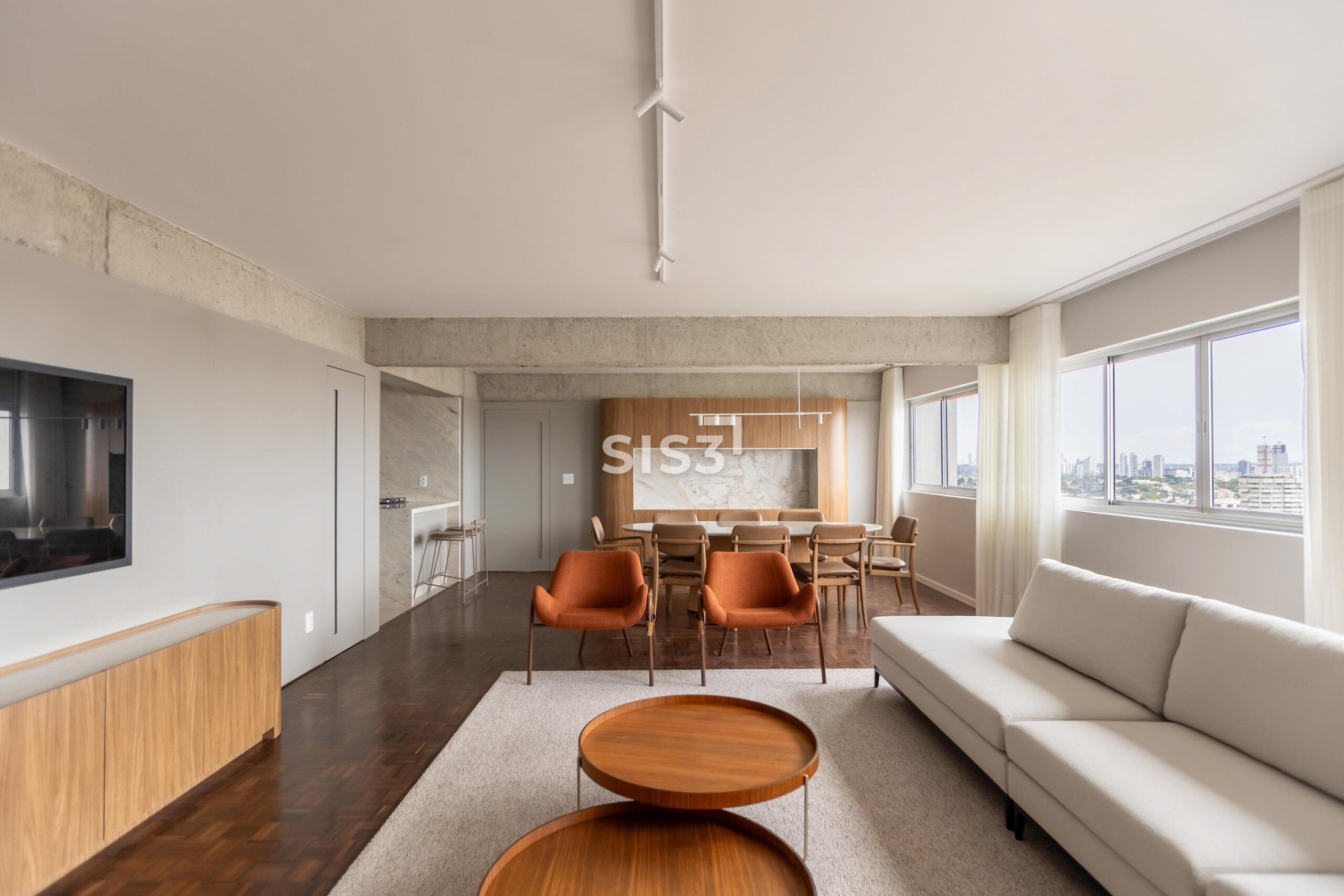 O Edifício Concorde passa por um retrofit completo que atualiza sua estrutura e seus espaços, respeitando a arquitetura original e revelando novos elementos construtivos. Nesta cobertura duplex de 360 m² privativos, a intervenção valoriza a laje aparente, os volumes estruturais expostos e a combinação precisa entre concreto, madeira e superfícies claras, criando uma leitura contemporânea e atemporal.
