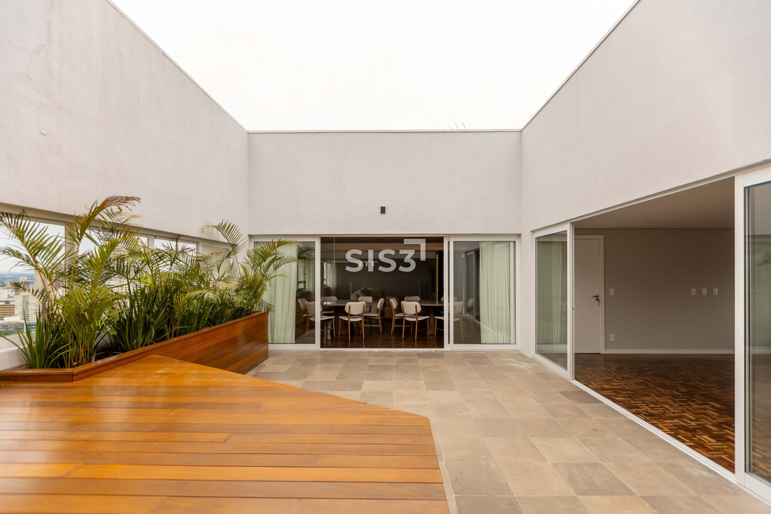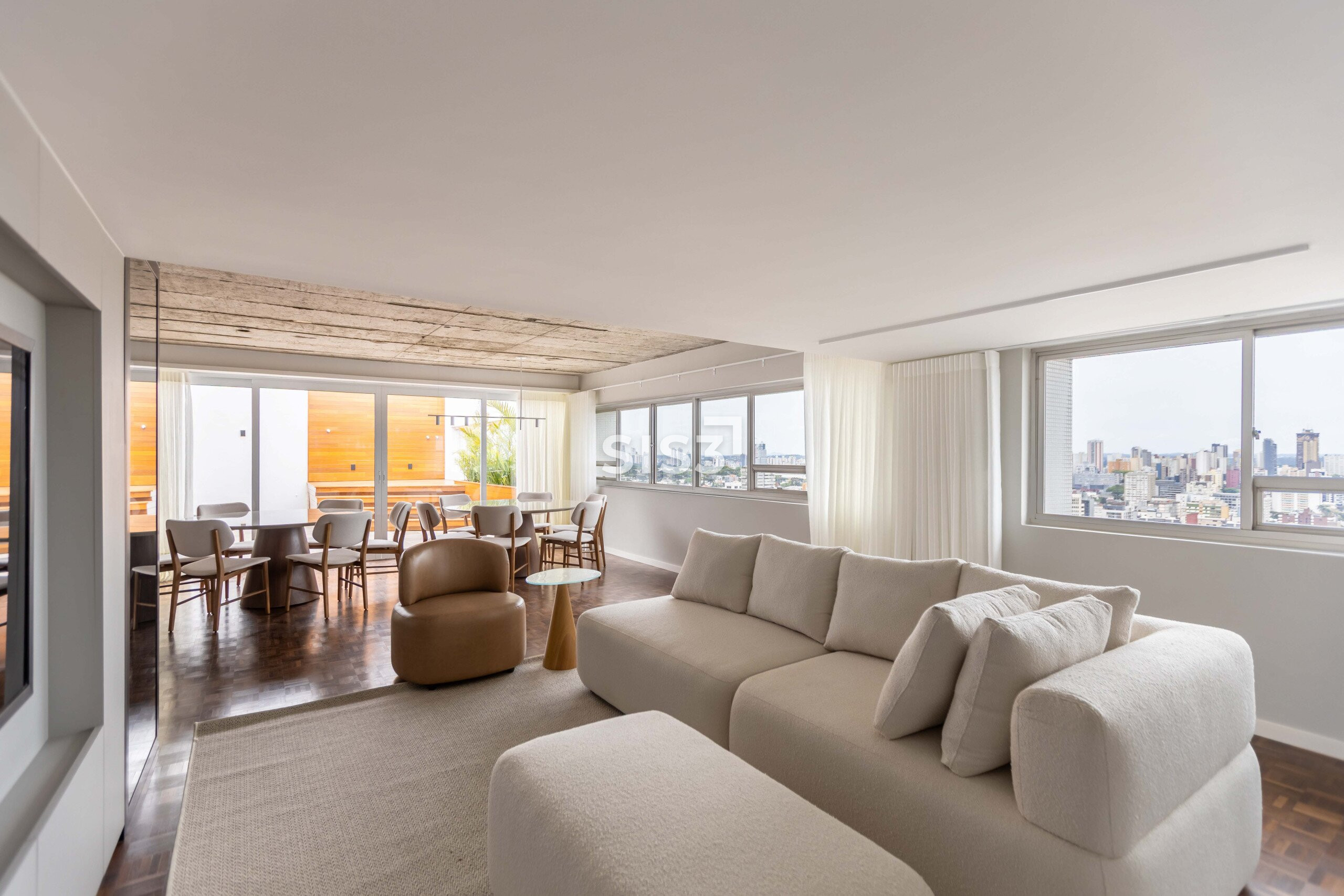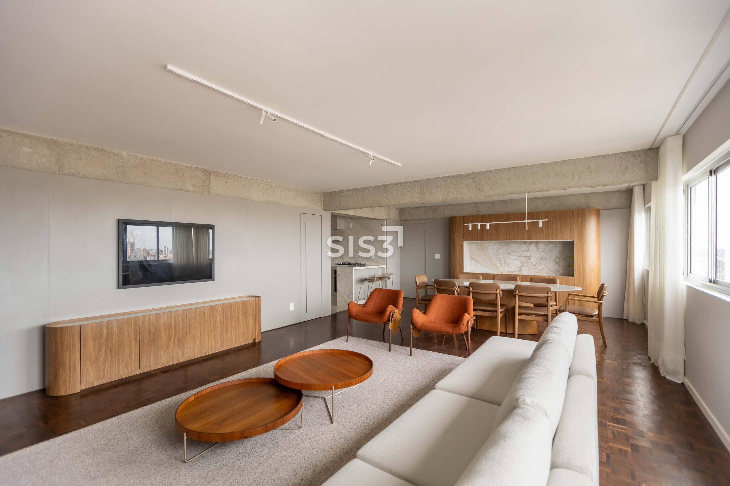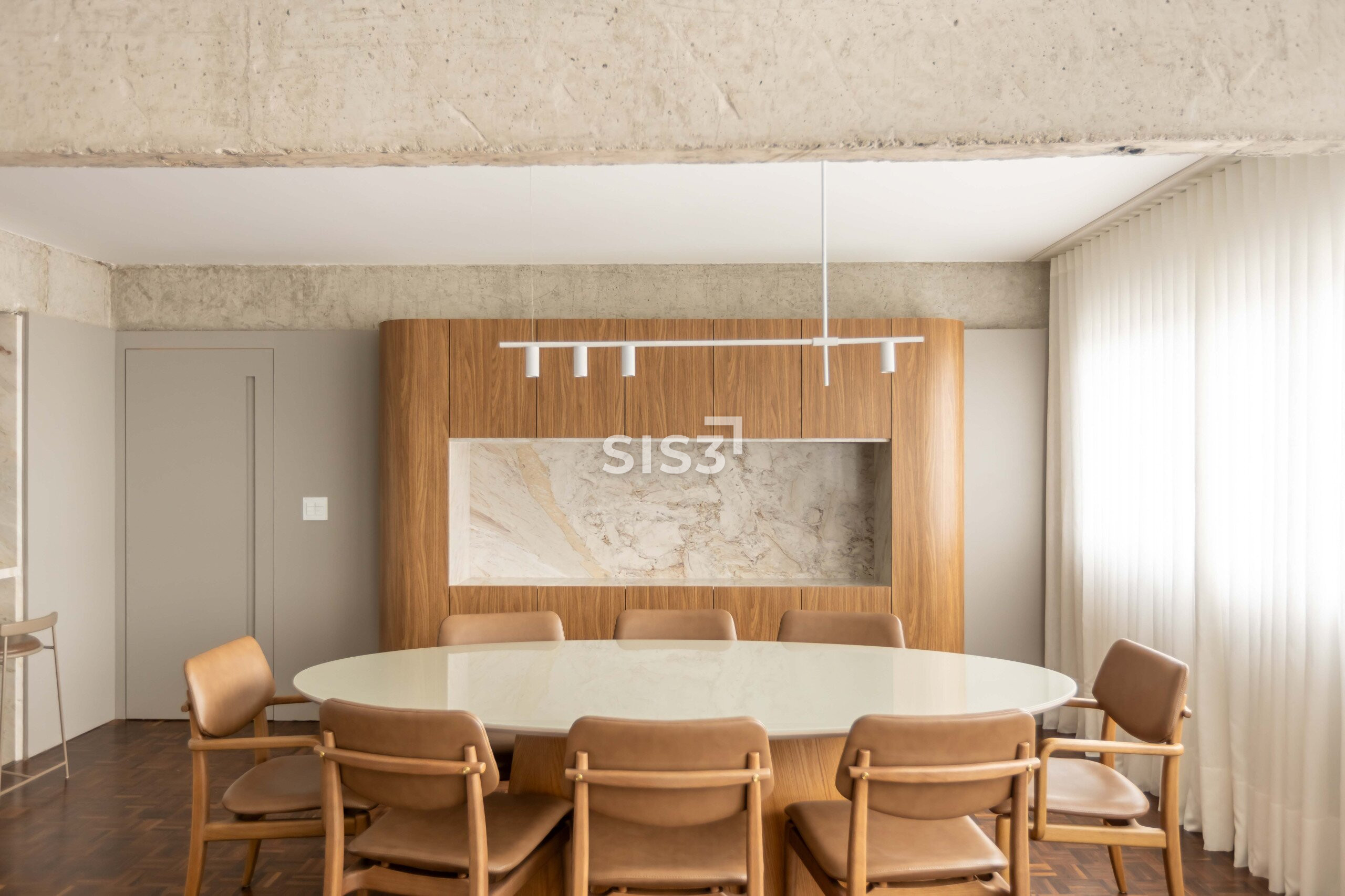 O Edifício Concorde passa por um retrofit completo que atualiza sua estrutura e seus espaços, respeitando a arquitetura original e revelando novos elementos construtivos. Nesta cobertura duplex de 360 m² privativos, a intervenção valoriza a laje aparente, os volumes estruturais expostos e a combinação precisa entre concreto, madeira e superfícies claras, criando uma leitura contemporânea e atemporal.